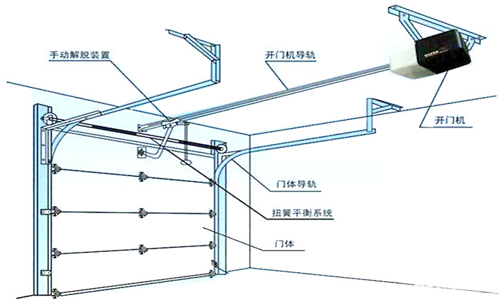 五金配件 1、軌道扭簧:軌道材料為厚度1.5mm的熱鍍鋅鋼板,表面可經過處理2、平衡系統:采用扭簧裝置,使門體開啟更為輕便,工作壽命可達5萬次以上3、滾輪:滾輪內采用進口軸承密封處理,外層用白色尼龍壓鑄而成。高度耐磨損,抗老化,使用壽命長4、密封條:門扇下端及軌道與墻體連接處設有密封膠條,高度耐老化,環保,抗寒冷,長期使用不變形,能有效地抵御風沙、雨水的侵蝕。