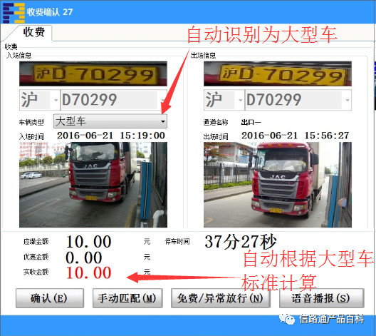 系統(tǒng)自動計算對應車型的繳費金額,無需人工選擇,避免至少10%的收費漏洞 |